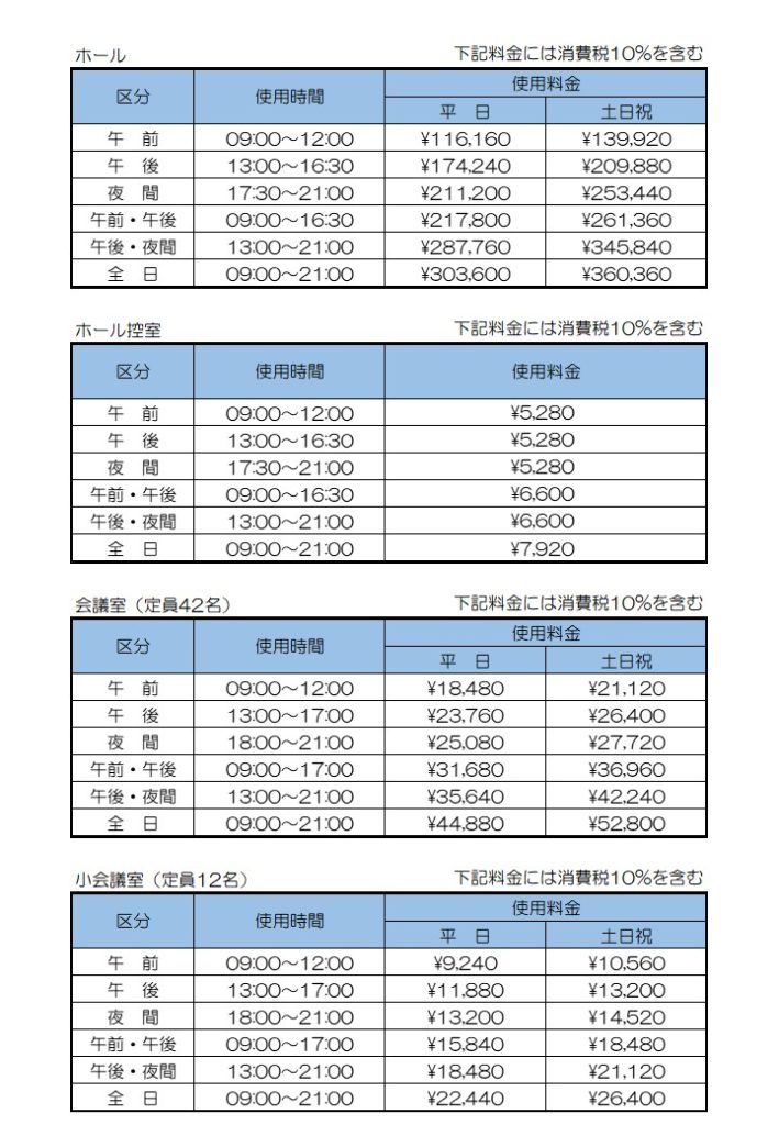 この度、全電通労働会館では昨今の光熱費を含む諸経費の高騰により、ホール会議室使用料金・備品使用料金等を改定させていただくこととしました。